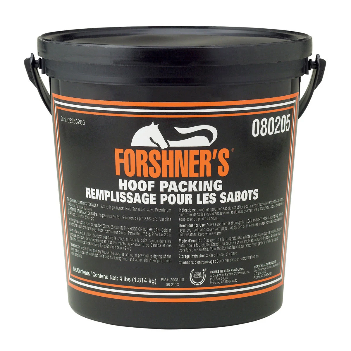 Packed in the hoof cavity, Forshner's Hoof Packing provides vital oils and medication for the prevention and treatment of hardened frogs, contracted heels, hoof dryness and infecti…