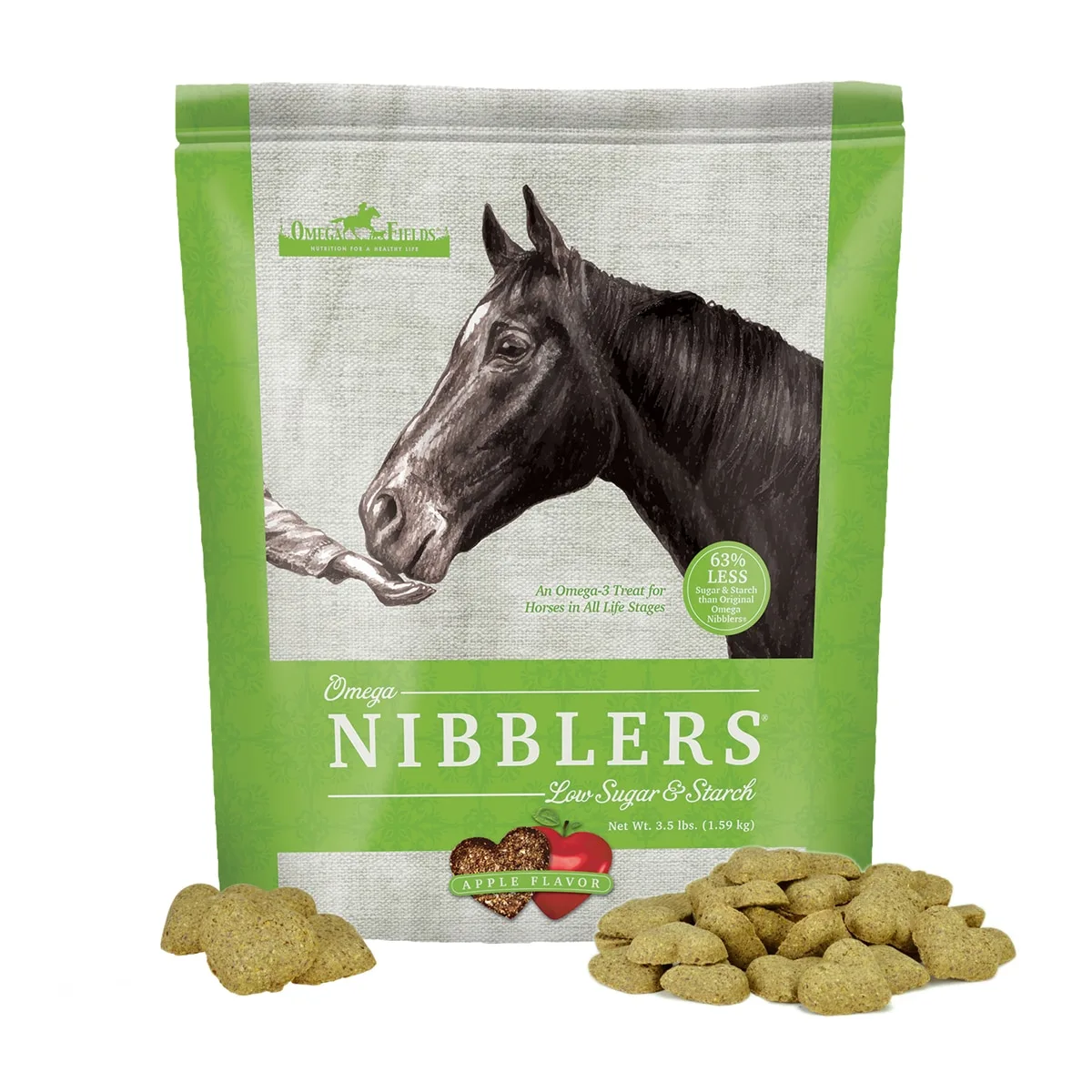 Omega Nibblers® Low Sugar & Starch are tasty and nutritious Omega-3 heart shaped apple flavored treat supplement for horses in all life stages. Made from stabilized ground …