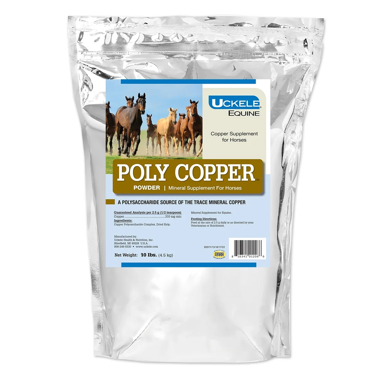 Poly Copper™ Powder provides bioavailable, polysaccharide-coated copper only to allow for quick and easy diet balancing. While there are a variety of important trace minerals needed for your horse’s diet, copper is commonly deficient due to it being low in some forages or from copper antagonists that deplete the body of copper, such as too much sulfate in drinking water or high iron intake. Copper plays an important role in coat and skin pigmentation, hoof health, metabolic processes, bone formation, soft tissue elasticity, and storage of other key minerals. To maximize bioavailability and its effect, the copper in Poly Copper Powder is partnered with polysaccharides to help protect the key minerals until they reach the digestive site where they can be most effectively absorbed and utilized.
