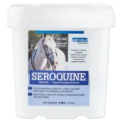 Seroquine Pellets support a calm demeanor while maintaining alertness. This formula may reduce hyperactivity and promote relaxation and is designed to do so without creating undesired drowsiness. The key ingredient, magnesium, promotes normal energy production and proper nervous system function. Taurine, thiamine(B1), theanine, and inositol help modulate the stress hormones cortisol and adrenaline. Seroquine is formulated to help balance the stress response during separation, travel, or tension caused by changes in your horse’s daily routine. Seroquine is a great choice for performance horses to help keep them calm and relaxed before, during, and after competition while maintaining focus. Also available in powder form and a convenient paste for additional support when needed!